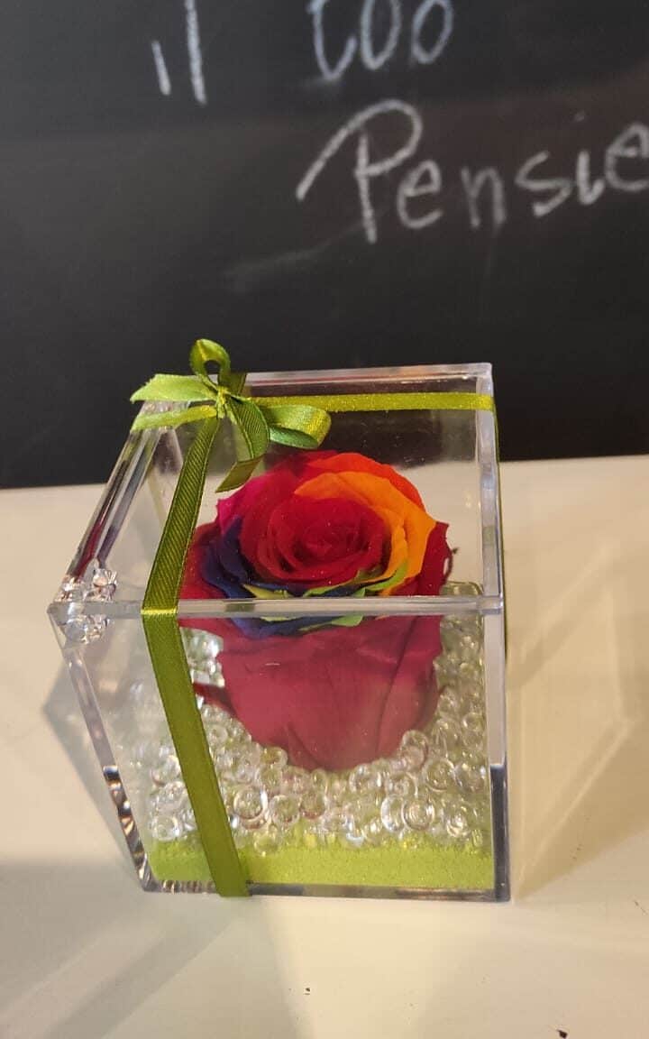Box in plexiglass con Rosa multicolore stabilizzata
