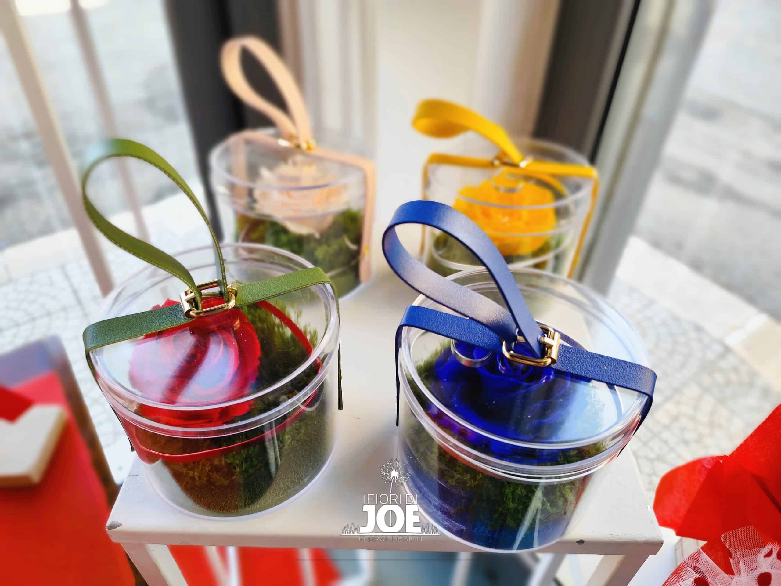 Rosa stabilizzata in box tondo trasparente – disponibile in diverse varianti